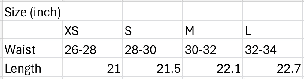 size chart on the last slide
